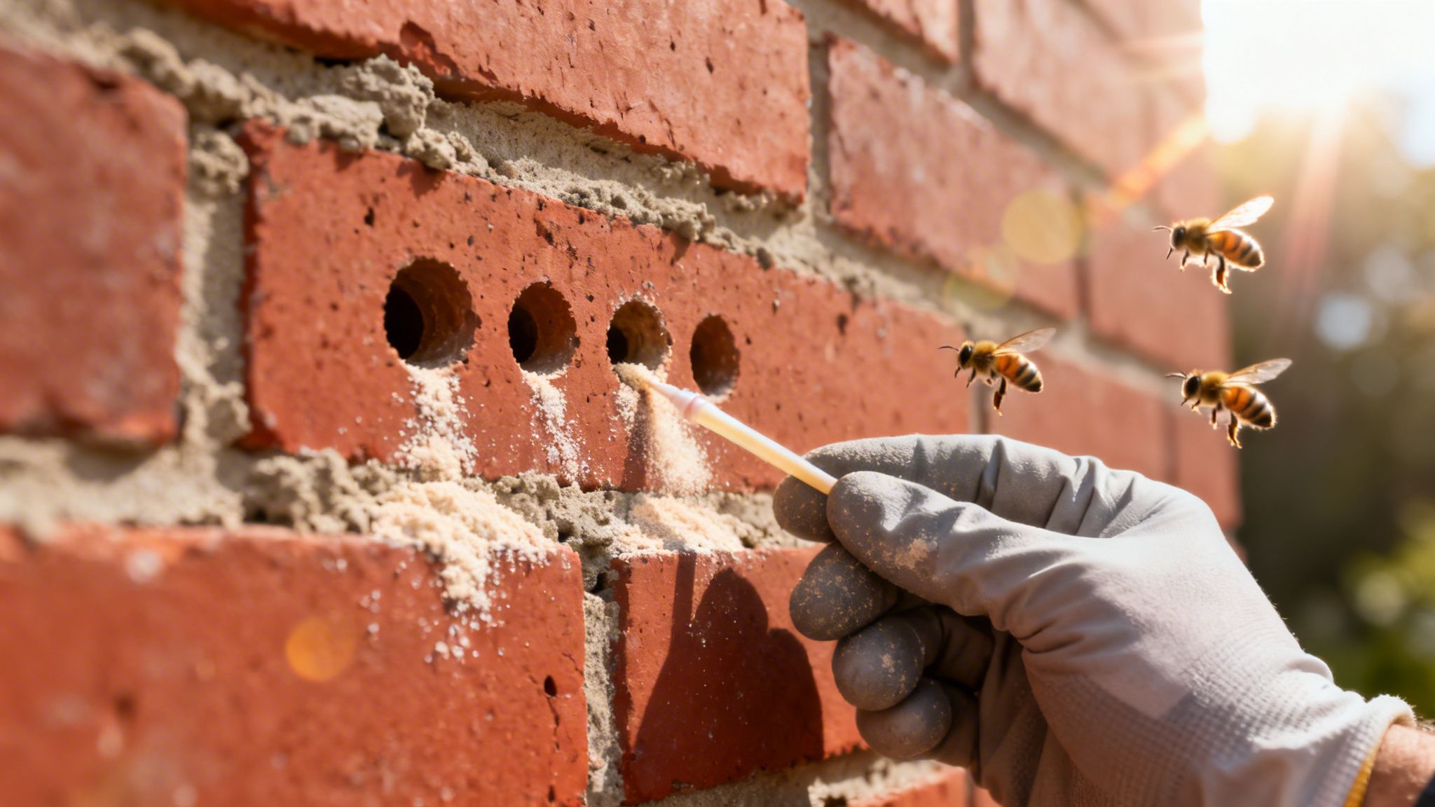 Det handler i virkeligheden mindre om at "skræmme" bierne væk og mere om at gøre det fysisk umuligt for dem at grave. Murbier er vilde med gamle, svage kalkmørtler, der over tid er blevet sandede og nemme at grave i.