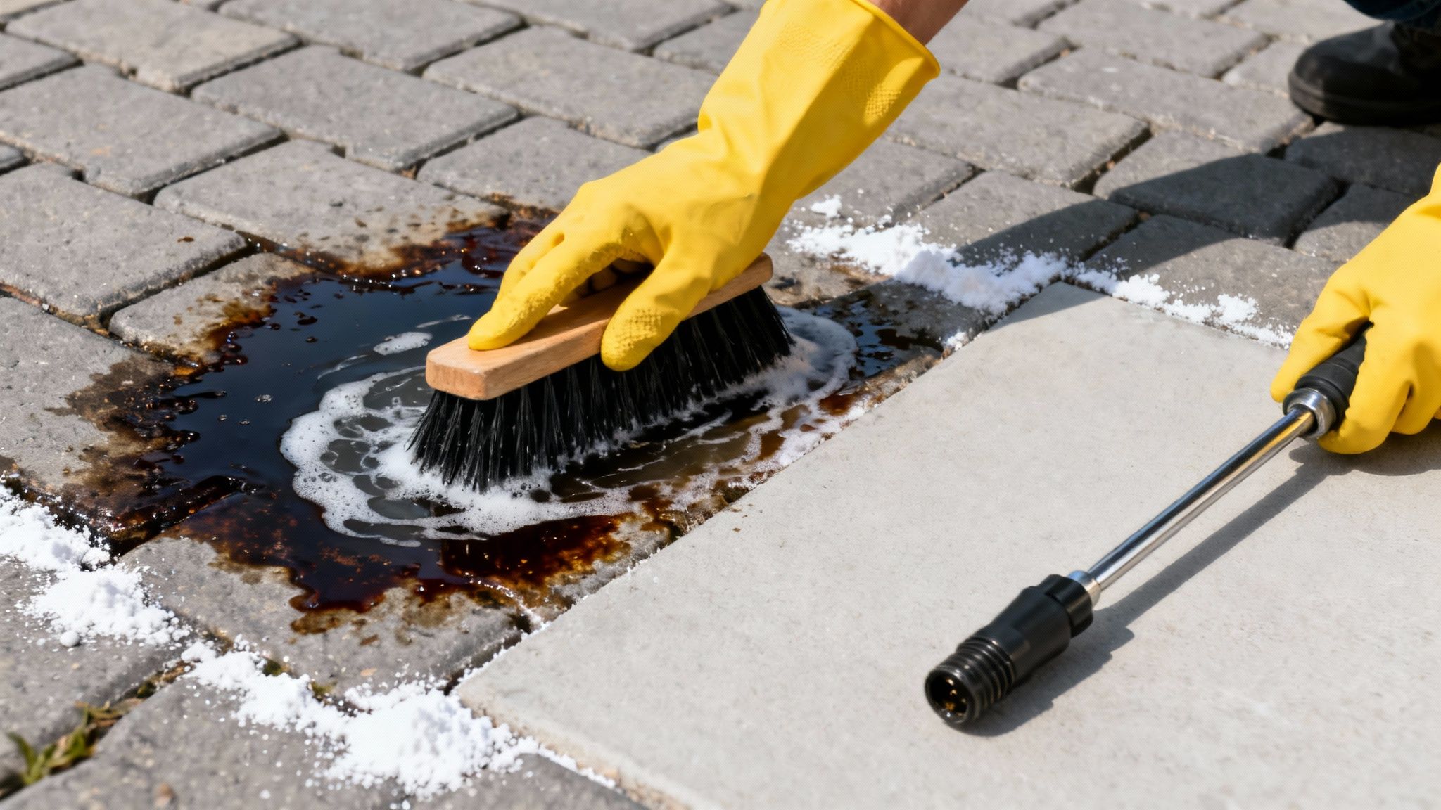 Godt, nu hvor du ved, hvad du har med at gøre, er det tid til at finde arbejdstøjet frem. Der er heldigvis flere veje til Rom, når det kommer til at fjerne olie fra fliser, og her deler vi de metoder, vi selv har bedst erfaring med ude hos vores kunder. Vores filosofi er altid at starte blidt og kun skrue op for styrken, hvis det er nødvendigt.