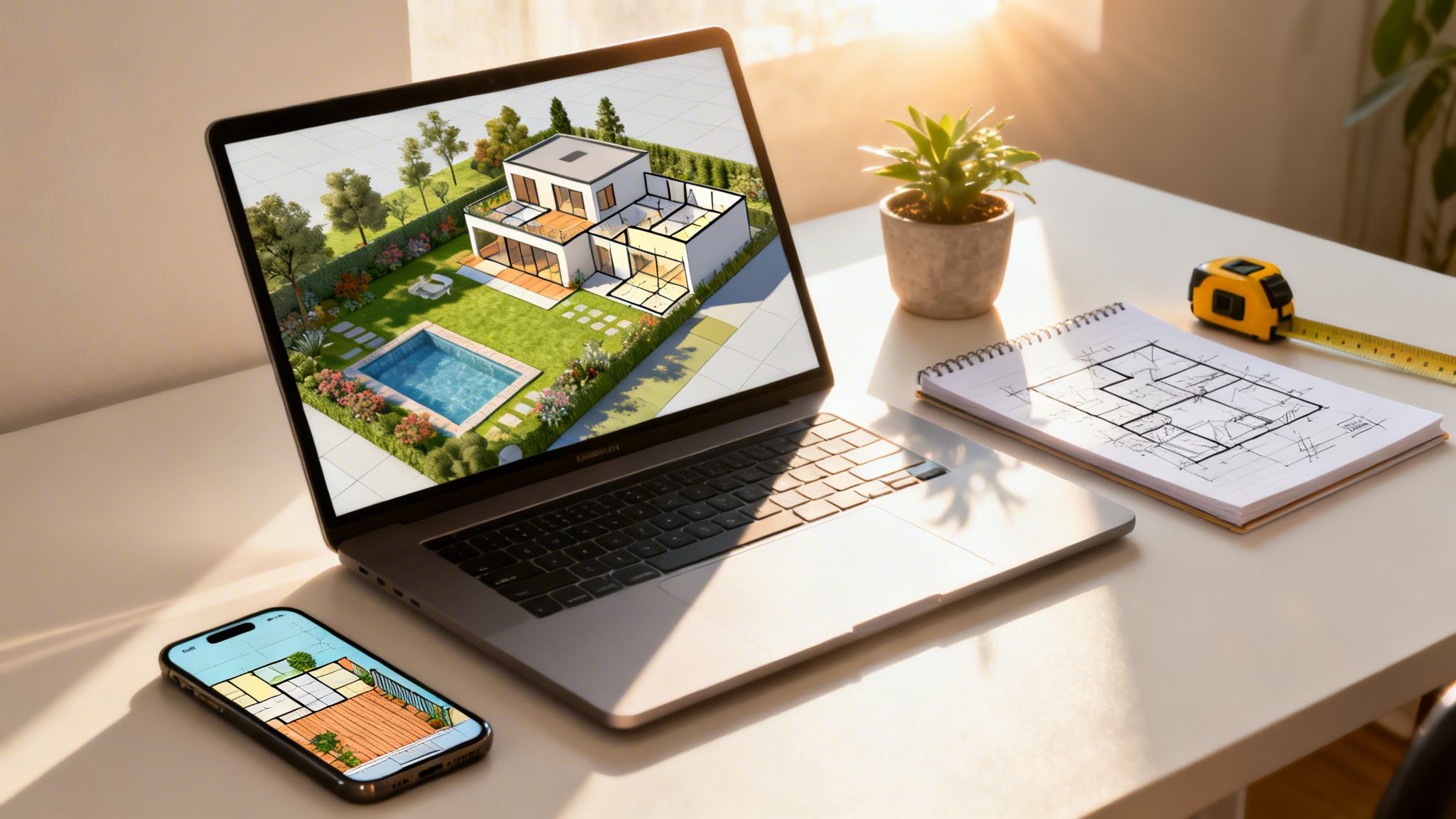 Live Home 3D er et stærkt værktøj for dig, der arbejder på tværs af flere enheder, f.eks. en iPad ude i haven og en computer på kontoret. Programmets helt store fordel er dets avancerede mobilfunktioner, især på nyere iPhones og iPads med LiDAR-scanner. Her kan du hurtigt opmåle et rum eller et udendørsområde, hvilket giver et præcist grundlag for dit design. Selvom det er mere avanceret end mange andre værktøjer, kan det bruges som et gratis plantegning program til simple projekter.